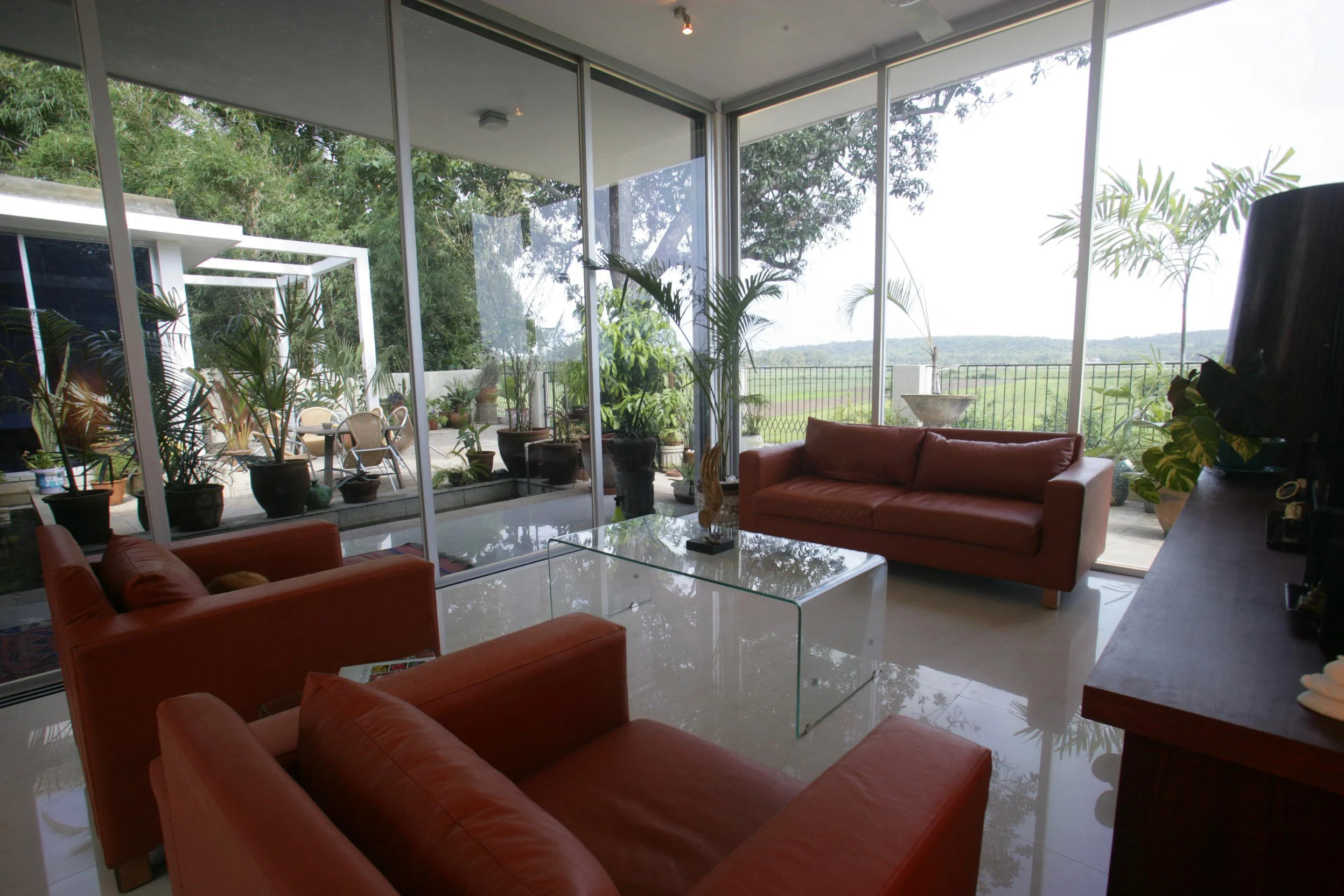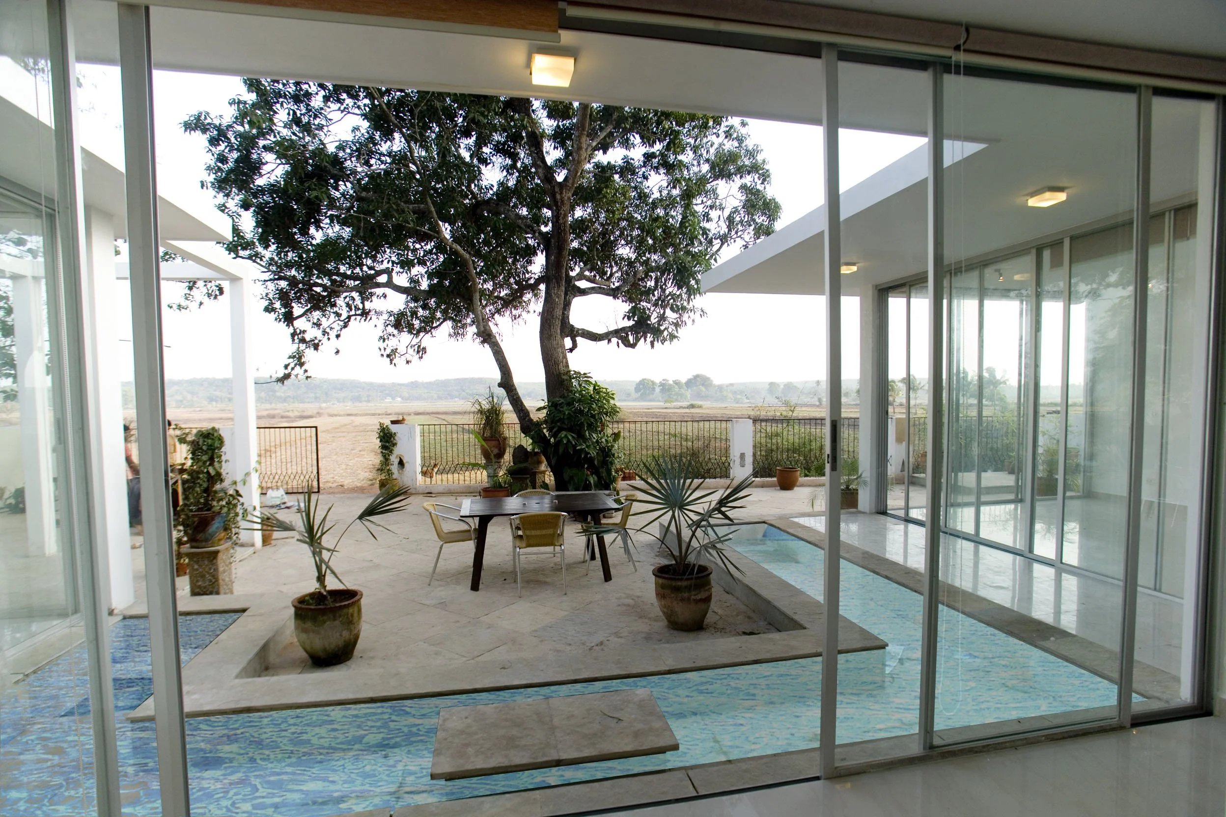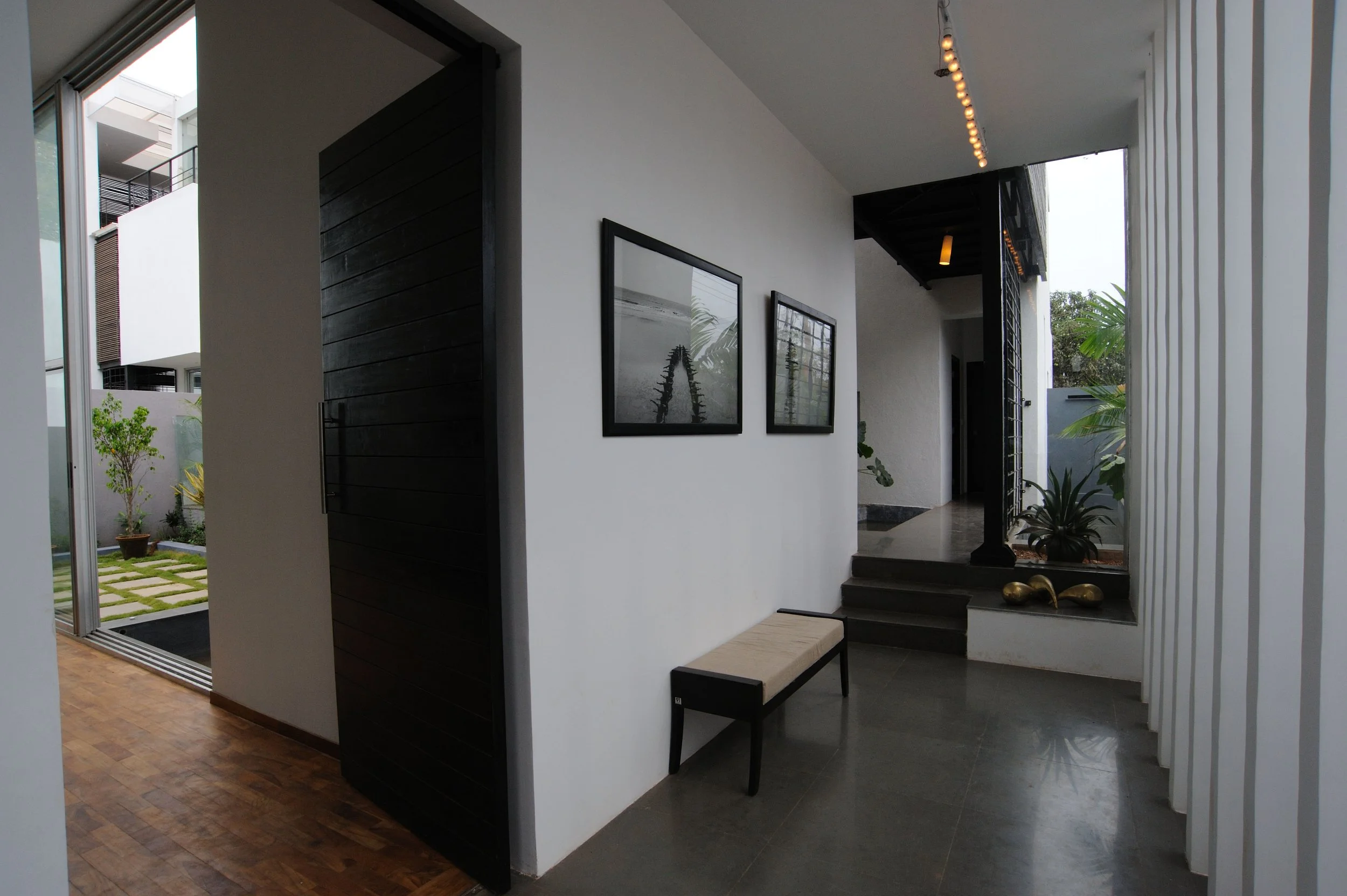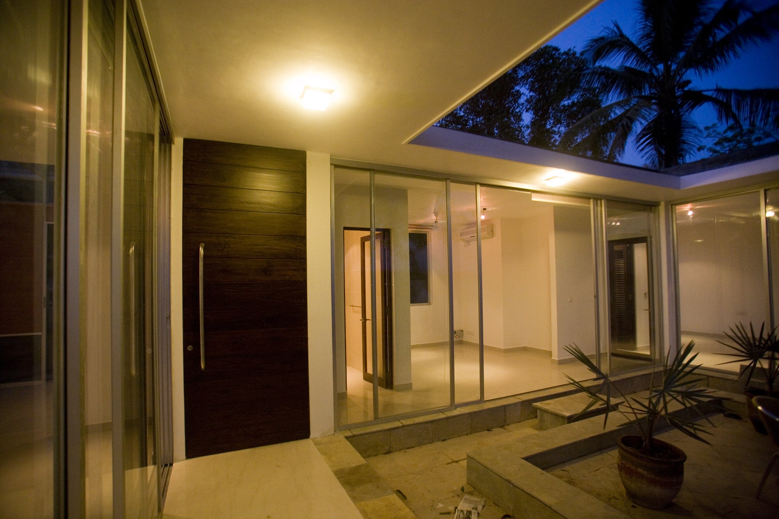 We used mostly locally sourced materials, like laterite stone for walls, teak for screens, doors and floors, Kota stone for floors.